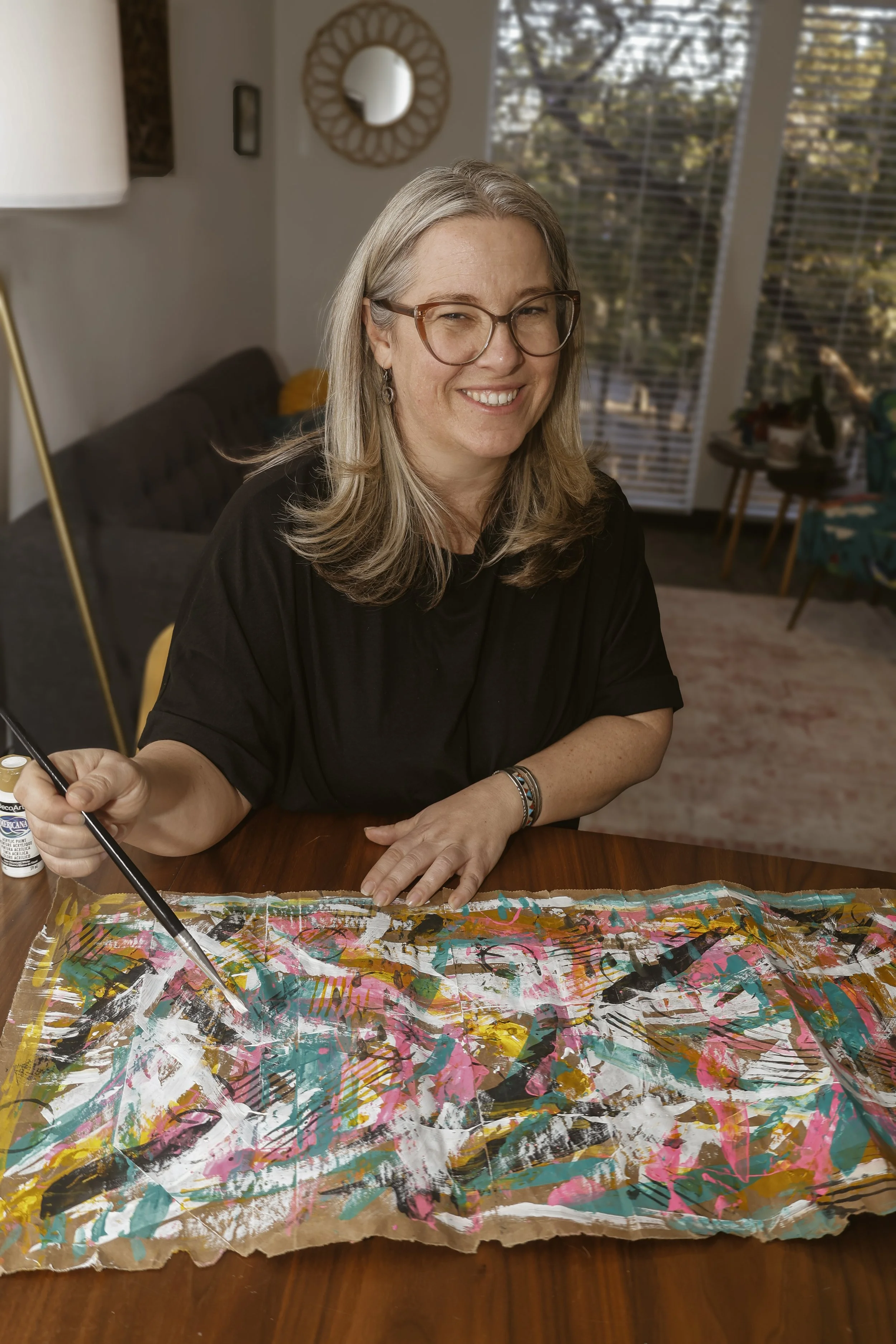 I didn’t go to art school and I didn’t consider myself a “real” artist for most of my life. I find beauty and self understanding in the messy, unintentional, imperfect medium of paint, pen and collage.