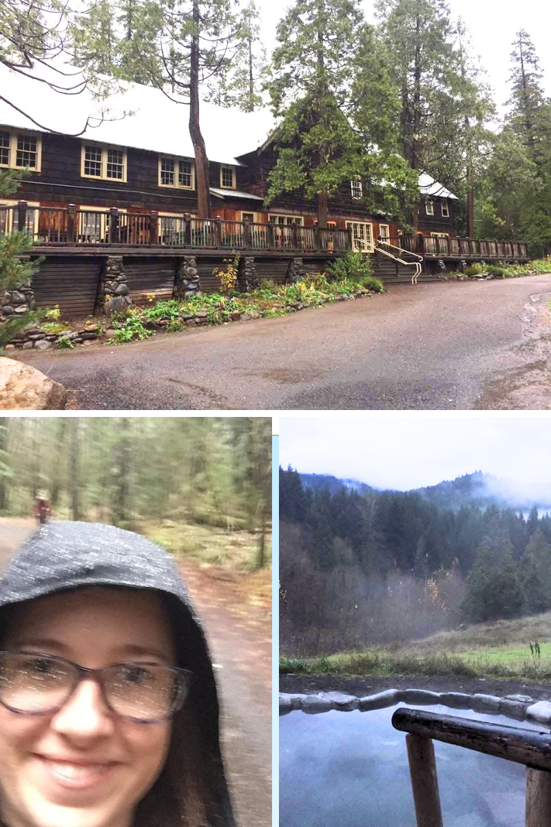 three of the four photos I took back in 2016 at Breitenbush while on the retreat with Hilary and Dana. The lodge and dining hall, the silent pool and a blurry selfie in the tall trees.